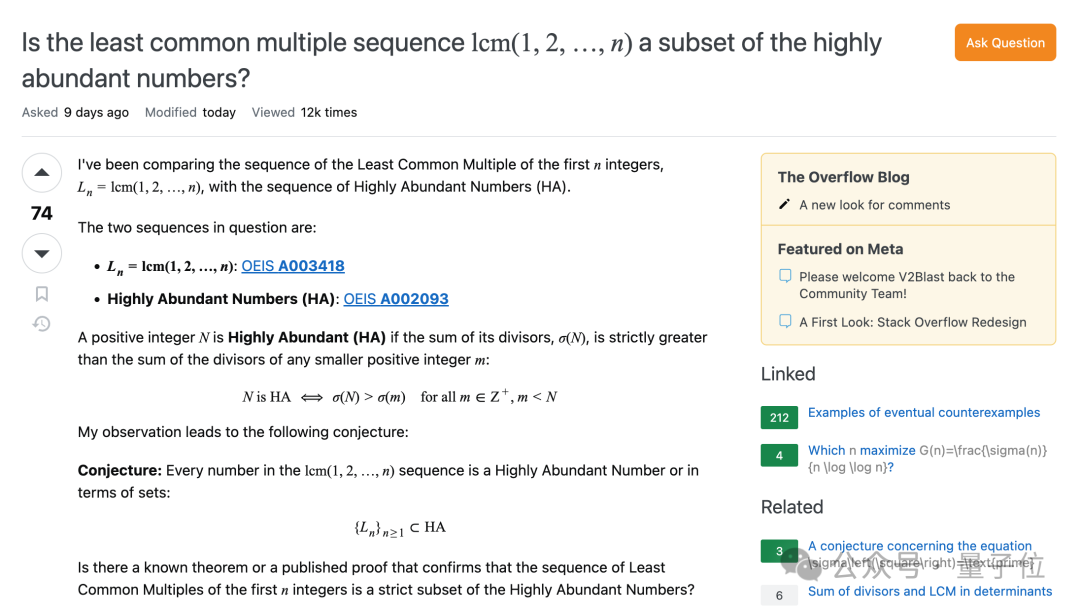 先来看看原始问题,是3年前就在mathoverflow上提出的: