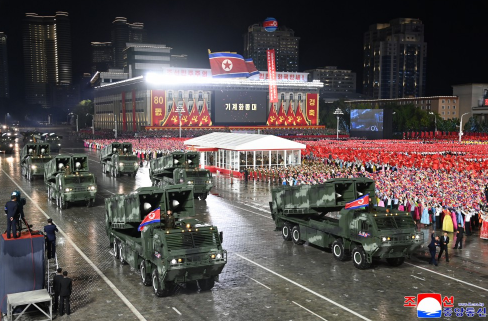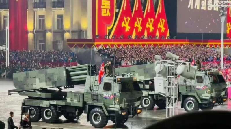 而火箭炮兵部队出现了重大变化,先前朝鲜阅兵式上的常客、从122毫米到240毫米再到300毫米再到超大型的600毫米远程火箭炮,似乎有一些被“拿”了下来。出现在朝中社镜头前的是一款新锐的、使用卡车底盘的模块化火箭炮。