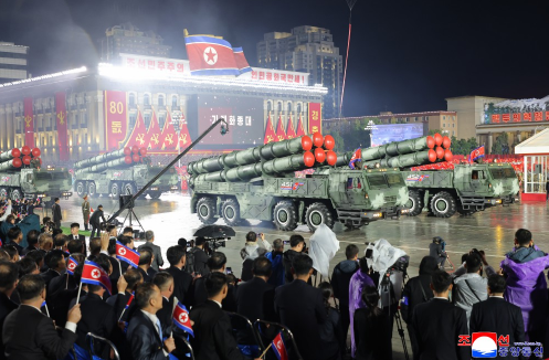 在火力打击上,人民军展出了155毫米履带式自行火炮,模块化火箭炮,车载巡飞弹和火星-11系列战术导弹。