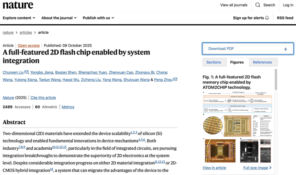 芯东西10月11日报道,10月8日,复旦大学团队研发的全球首颗二维-硅基混合架构芯片,相关研究成果在国际顶级学术期刊Nature上发表。
