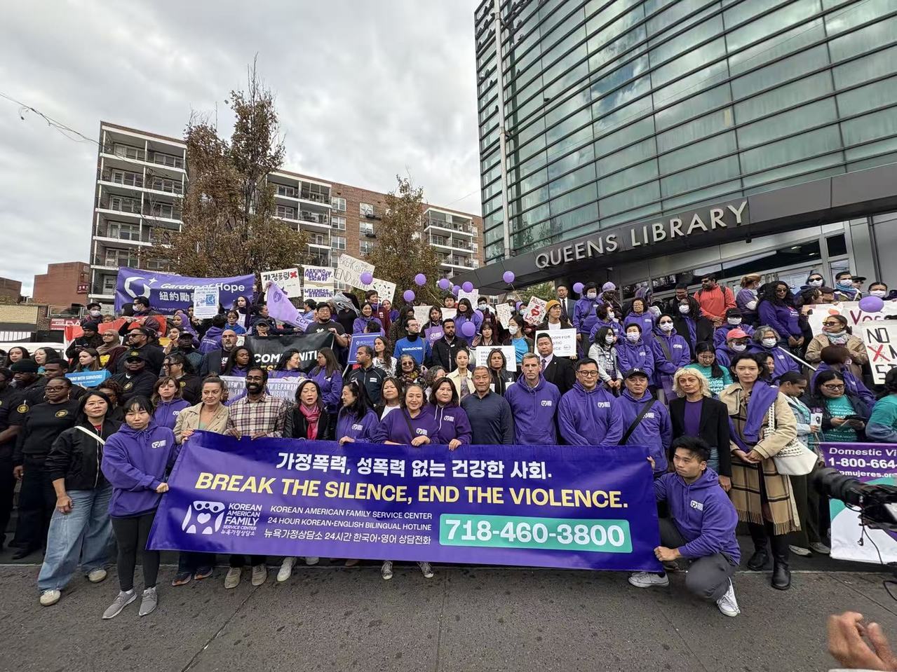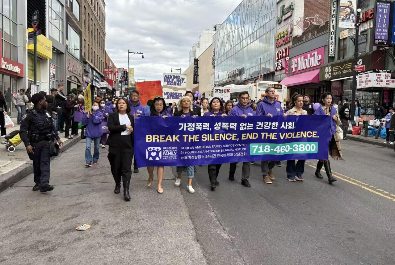 为响应“全国家暴警觉月”,韩美家庭支持中心(Korean American Family Service Center)10日下午在法拉盛举办第28届“反家庭暴力静默游行”,以“打破沉默,终结暴力”为主题,呼吁社会关注家庭暴力议题,支持受害者发声。