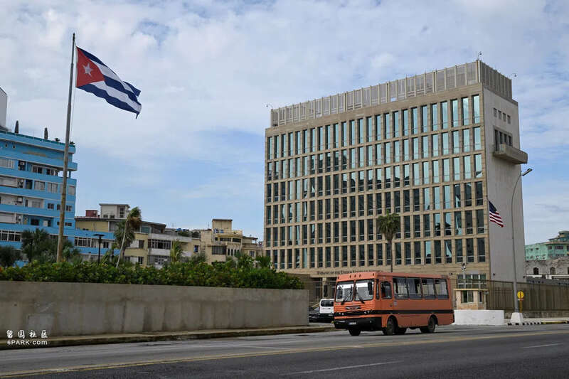 9月17日,古巴哈瓦那,美国驻古巴大使馆附近悬挂着一面古巴国旗。 图源:外媒