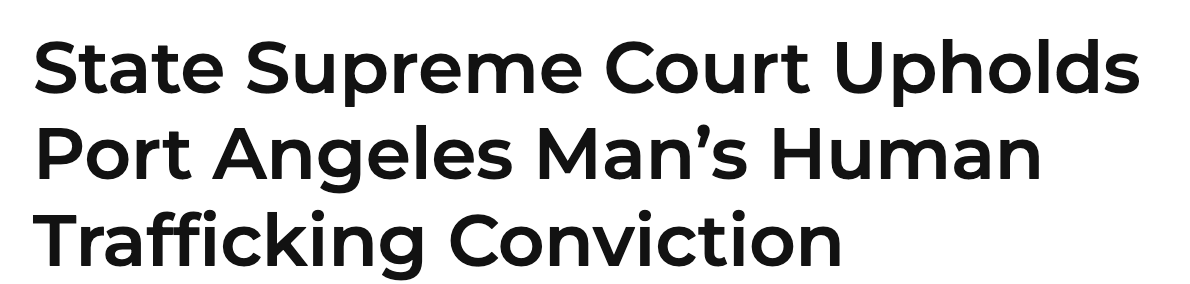 一名来自安吉利斯港(Port Angeles)的男子因人口贩卖和多项性犯罪被定罪,上周华盛顿州最高法院拒绝审理他的上诉案,这意味着他将至少在监狱中服刑20年。