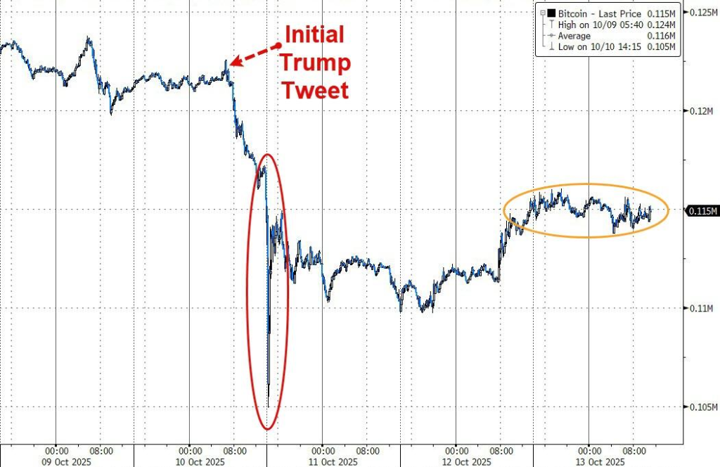 美元收盘较周五收盘价略有上涨,但低于当日高点。日元跌超0.7%,重新跌穿152。上周五暴跌后加密货币继续反弹,比特币盘中涨近2%重上11.6万美元,以太坊一度涨超5%。