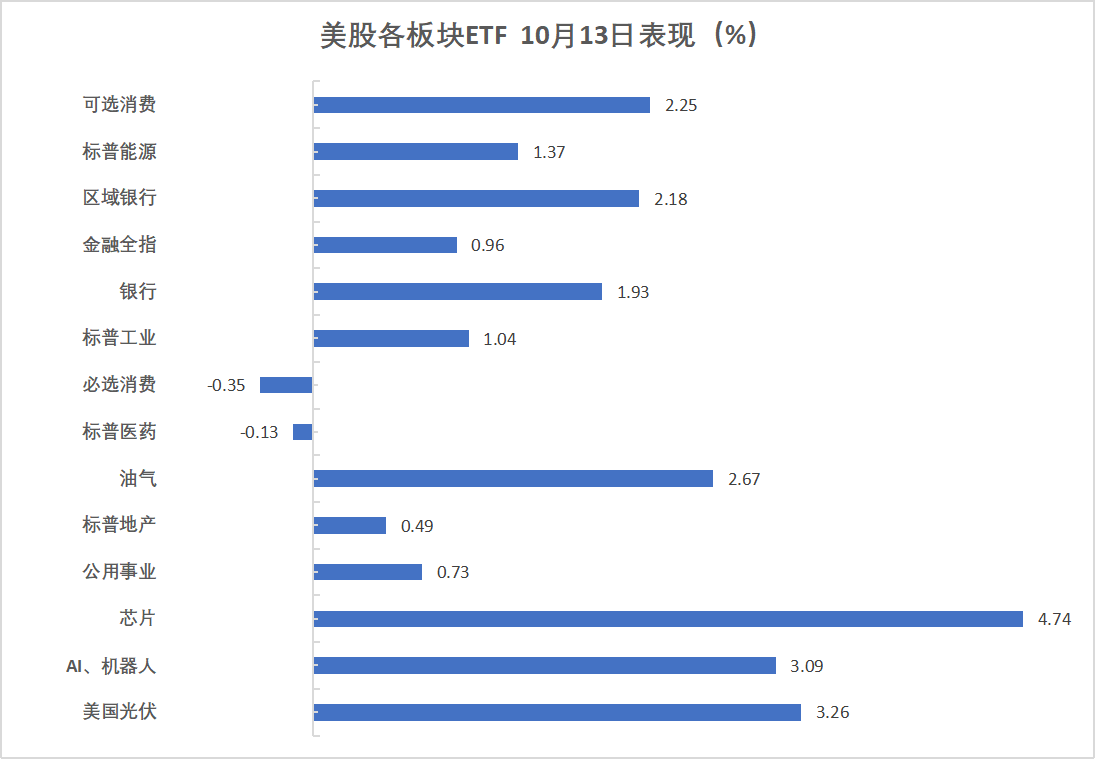半导体ETF收涨4.43%,全球科技股指数ETF、科技行业ETF、可选消费ETF、区域银行ETF至多涨2.57%,医疗业ETF则收跌0.11%,日常消费品ETF跌0.33%。