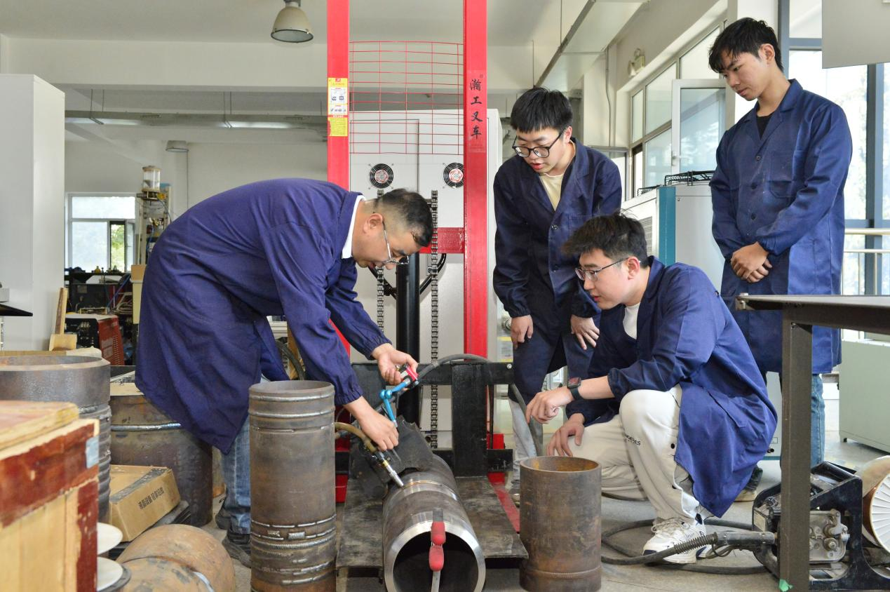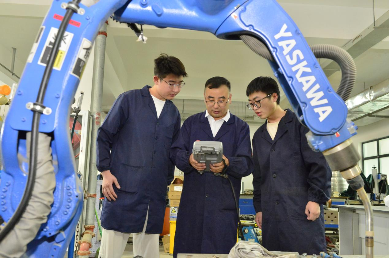 石玗教授开展同轴激光电弧按合增材机器人教学。兰州理工大学供图。