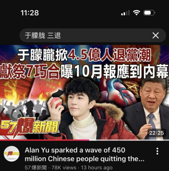 中国男星于朦胧坠楼身亡,至今已经逾一个月,海内外民众为他讨公道的声浪依然不减,并带起又一波中国和旅居海外的中国人声明“退党、退团、退队”的三退浪潮。这一现象不但引发海外观察者的关注,还成为台湾媒体热报的题材。