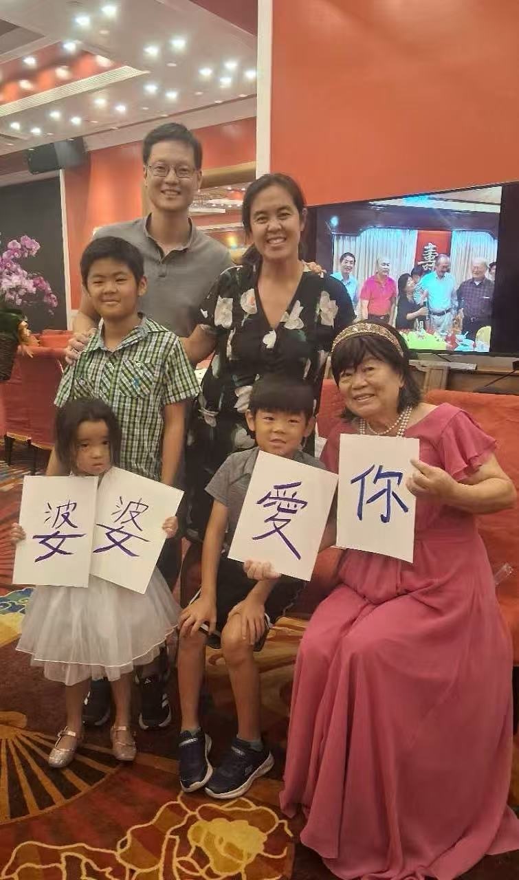 陈凤仪与女儿、女婿以及她的两个孙子,一个孙女。(陈凤仪提供)