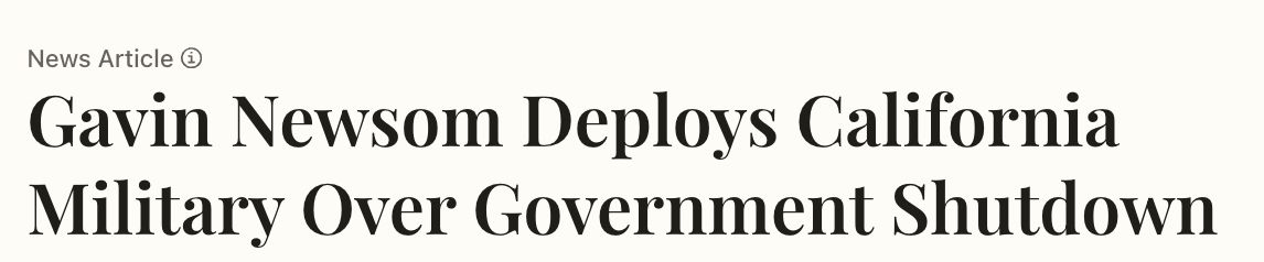 加州州长加文·纽森(Gavin Newsom)已宣布,将部署加州军方(California military,即加州国民警卫队,@TheCalGuard),以快速协助那些因联邦政府关门而食物福利受影响的家庭 。