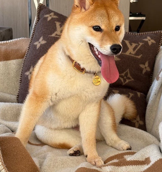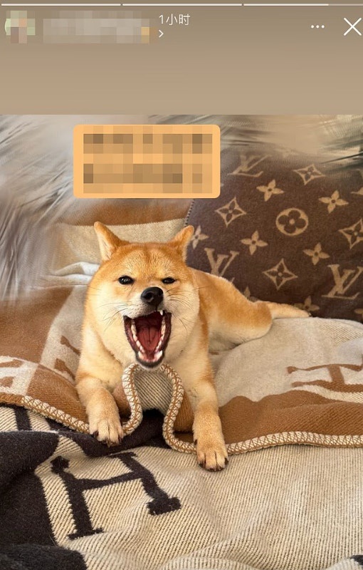 杨兰兰的柴犬使用Celine颈圈、LV枕头与爱马仕毛毯。(《每日邮报》)