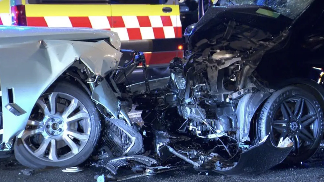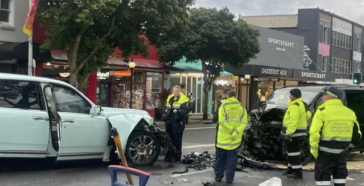 澳洲悉尼东部一处郊区一辆Tiffany蓝劳斯莱斯与一辆Mercedes-Benz(平治,又称奔驰)迎面相撞。(网传图片)
