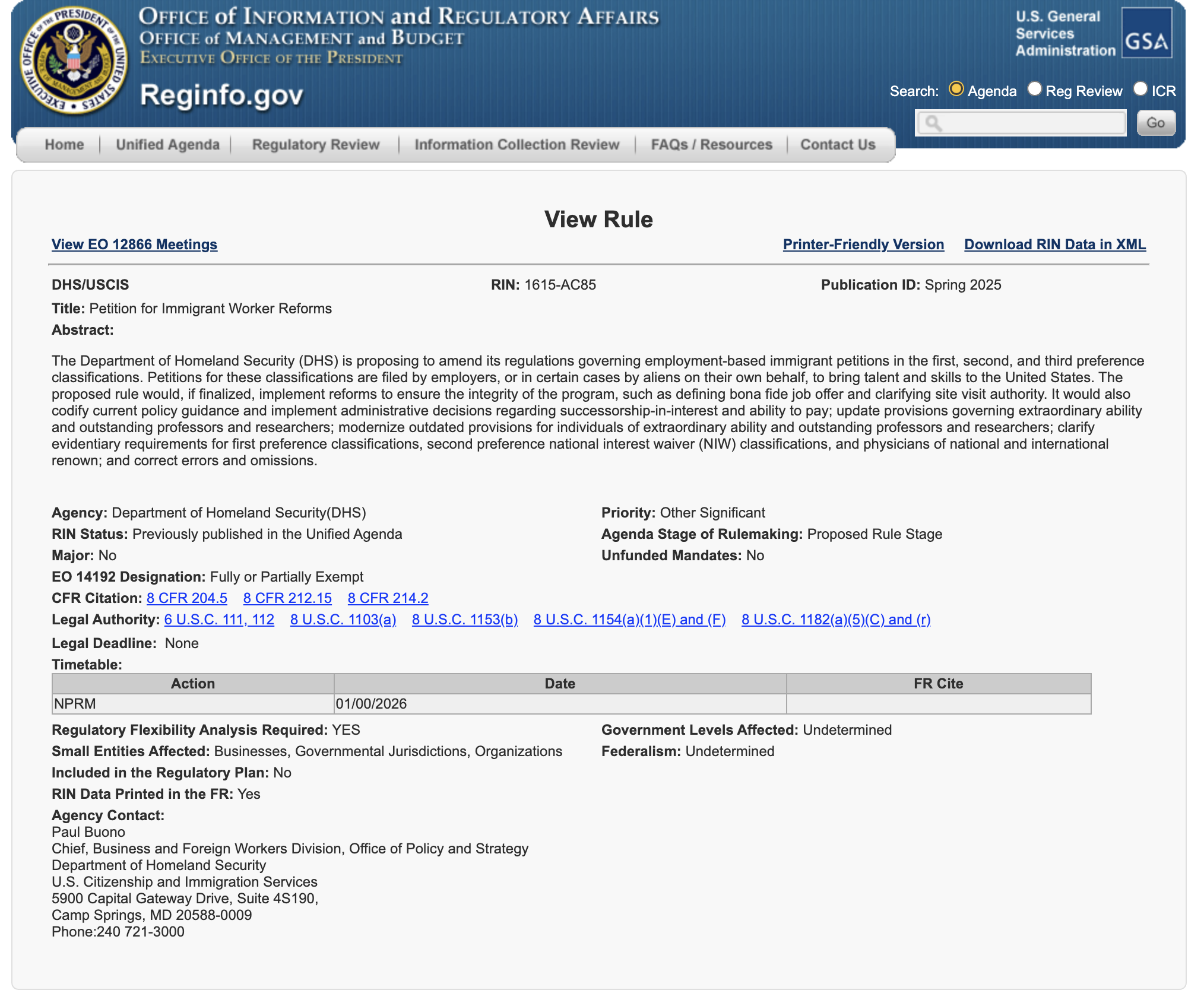 根据DHS发布的日程,这项被称为“基于就业的移民规则现代化草案”预计将在2026年1月正式对外公布。届时,公众将有一段时间的评论期,可以针对草案内容提出修改建议或反馈意见。