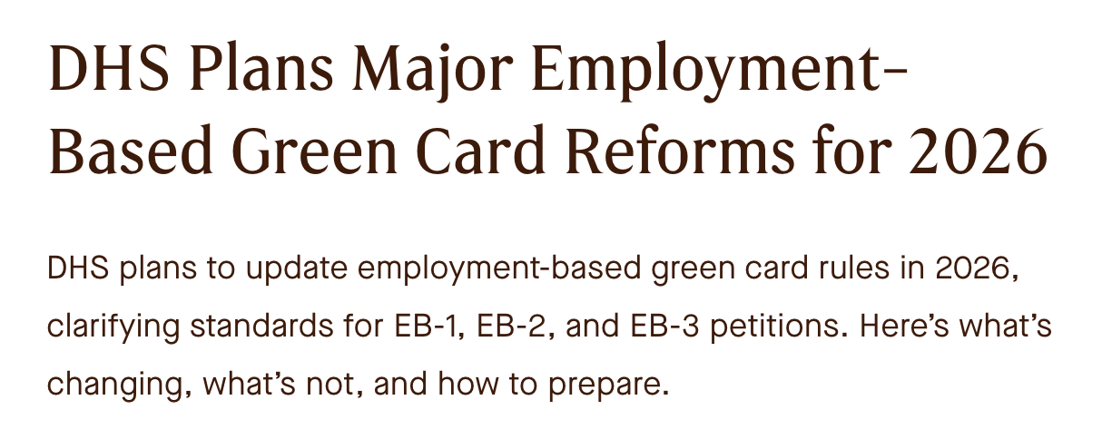 改革不仅影响正在申请EB-1、EB-2、EB-3绿卡的高技能移民,也将直接波及雇主的合规策略与用人布局。