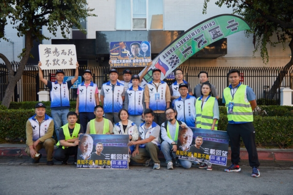 上周日(19日)下午,数十名华人在中共驻洛杉矶总领馆前集会,举行“三载回望四通桥:良知不灭,勇气不息”主题纪念活动,声援三年前在北京四通桥以肉身抗争的彭立发,并追思与“四通”有渊源的思想先行者万润南。