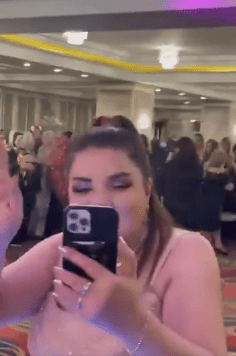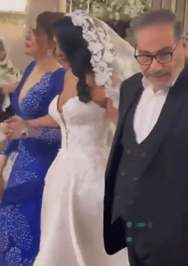 影片中,沙姆哈尼陪女儿走进婚礼大厅。新娘穿低胸露肩连身裙,露出乳沟,而沙姆哈尼的妻子也穿着同样暴露的晚礼服。