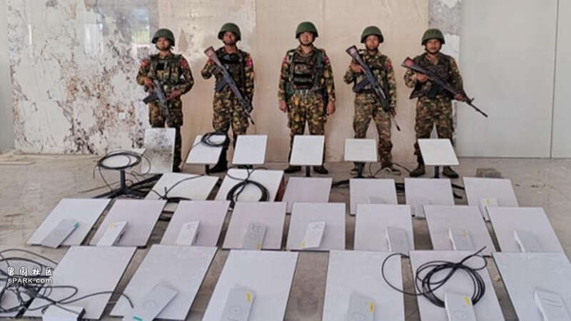 缅甸军方在KK园区检获大量星链设备。 美联社
