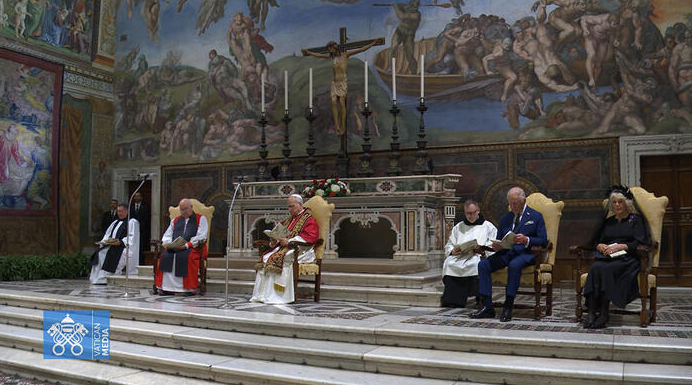 这是自500年前亨利八世带领英格兰教会脱离罗马教廷以来,英国君主首次以英格兰国教会领袖身份与天主教罗马教皇共同祈祷。