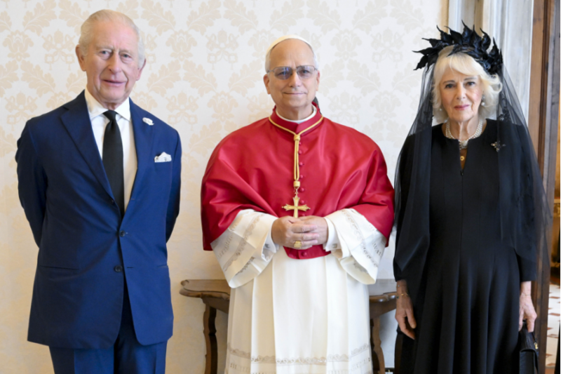 今天(23日),英国国王查尔斯三世携王后卡米拉对梵蒂冈进行国事访问。其间,查尔斯三世与天主教罗马教皇利奥十四世共同公开祷告,这一举动具有划时代的意义,象征着英格兰国教会与罗马天主教会在分裂500年后实现“和解”。 意大利Tgcom24网报道,英国国王查尔斯三世与王后卡米拉昨晚抵达罗马钱皮诺机场。仍在接受癌症治疗的查尔斯三世精神状态良好,身着灰色西装、系蓝色领带,卡米拉则以深色礼服优雅亮相。