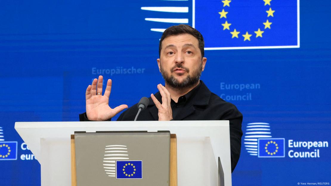 泽连斯基在欧盟发言泽连斯基在欧盟发言。图像来源: Yves Herman/REUTERS