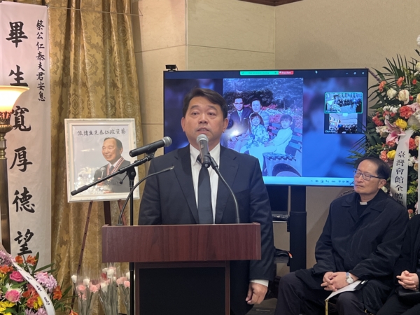 中华民国总统府资政、纽约台湾商会创会会长和世界台湾商会联合总会创会总会长蔡仁泰于10月13日在台辞世,享寿93岁。蔡仁泰的遗体日前运回纽约,告别仪式10月25日在法拉盛举行。驻纽约经文处处长李志强、国会众议员孟昭文以及蔡仁泰的家人、生前好友、社团负责人等数百人出席,他们高度赞扬蔡仁泰一生卓越的商业成就,乐善好施的精神以及努力为台湾拓展国际空间的贡献。