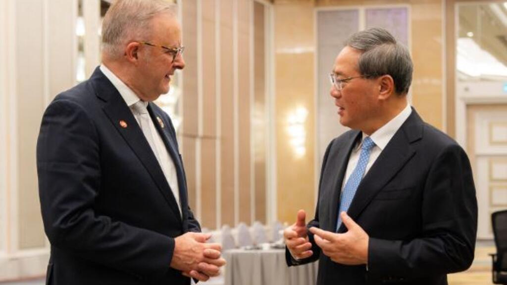澳大利亚总理阿尔巴尼斯(Anthony Albanese)周一在马来西亚吉隆坡东盟会议期间会见了中国国务院总理李强。阿尔巴尼斯表示,在会上提及近期南中国海发生的一次可能引发危险的军事遭遇事件后,李强“听取”了他对此事的关切。两国总理会晤的一周前,澳方披露,一架解放军战机在南中国海空域靠近一架澳侦察机时释放信号弹,澳政府已就这一事件向中方提出外交抗议。