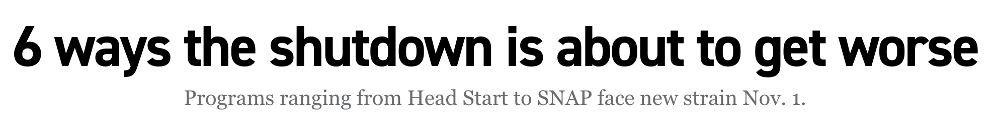 停摆冲击也波及到儿童教育与营养体系。Head Start项目——为约80万名6岁以下儿童提供早教、健康与营养服务——将在11月1日后资金中断,波及41个州及波多黎各,约59,000名儿童可能失去教育支持。