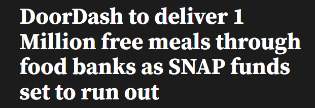 随着联邦政府停摆持续,数百万美国人可能无法在11月获得补充营养援助计划(SNAP)福利,但DoorDash正在伸出援手。