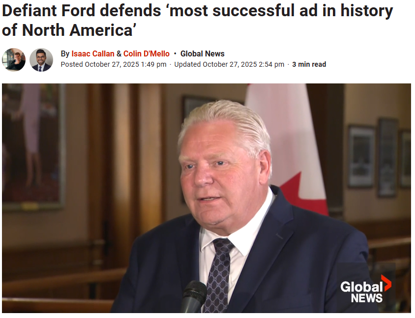 福特强调,广告目的并非为了“刺激川普”,而是为了确保安省和加拿大争取鲍平贸易协议,而非偏向川普的单边交易。