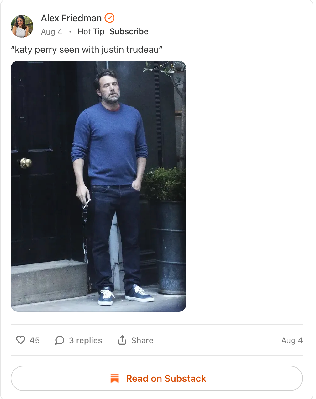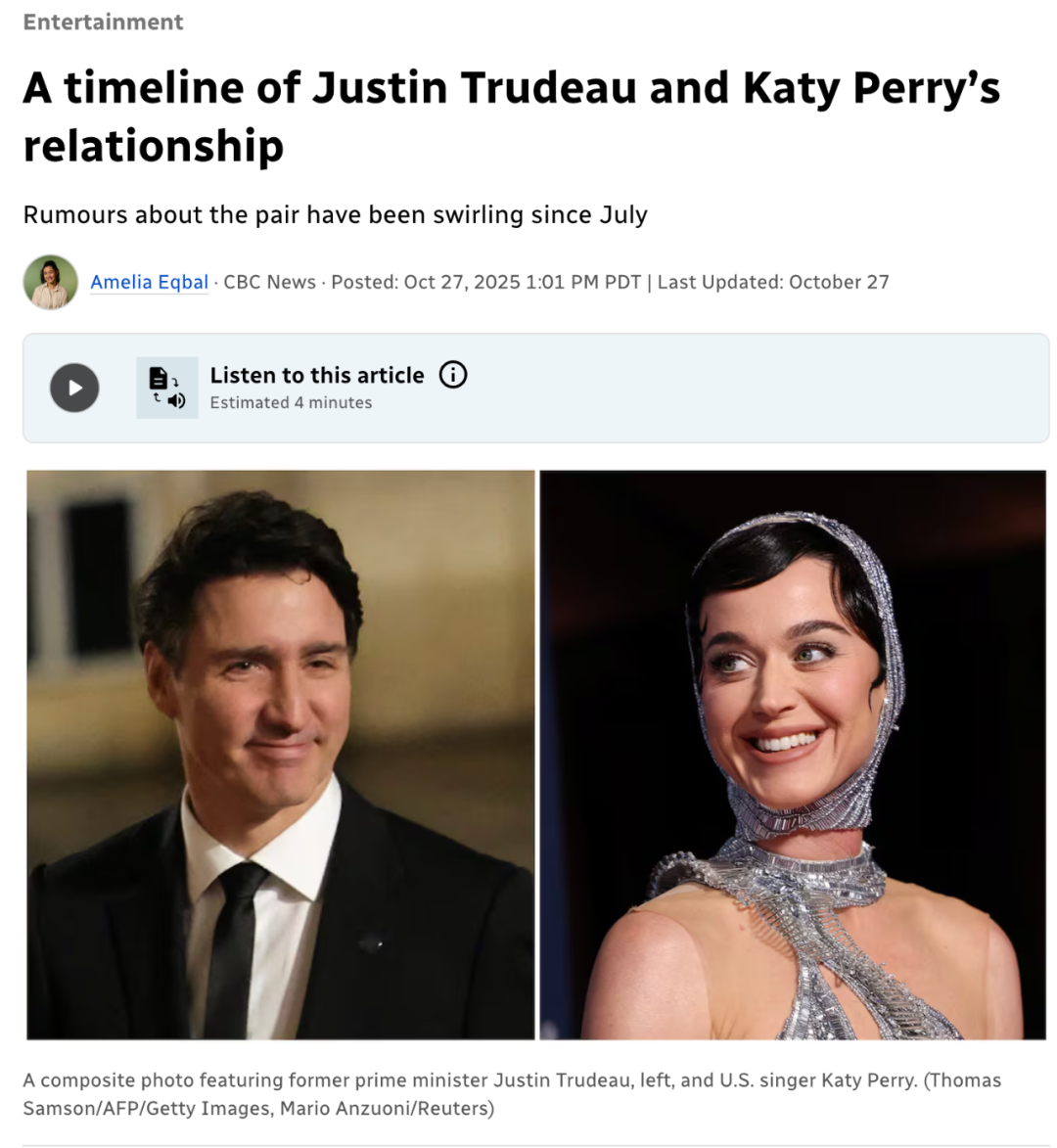 目前,无论是佩里还是特鲁多,两人都尚未公开回应这段关系。