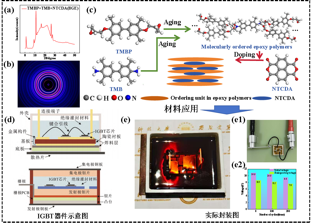近日,西安建筑科技大学机电工程学院“新能源电工材料与储能技术培育团队”创新提出“分子有序设计”策略,研制出兼具超高导热与卓越绝缘性能的新型环氧灌封材料。该成果发表于《先进功能材料》,为解决功率器件在极端工况下的可靠性难题提供了全新方案。