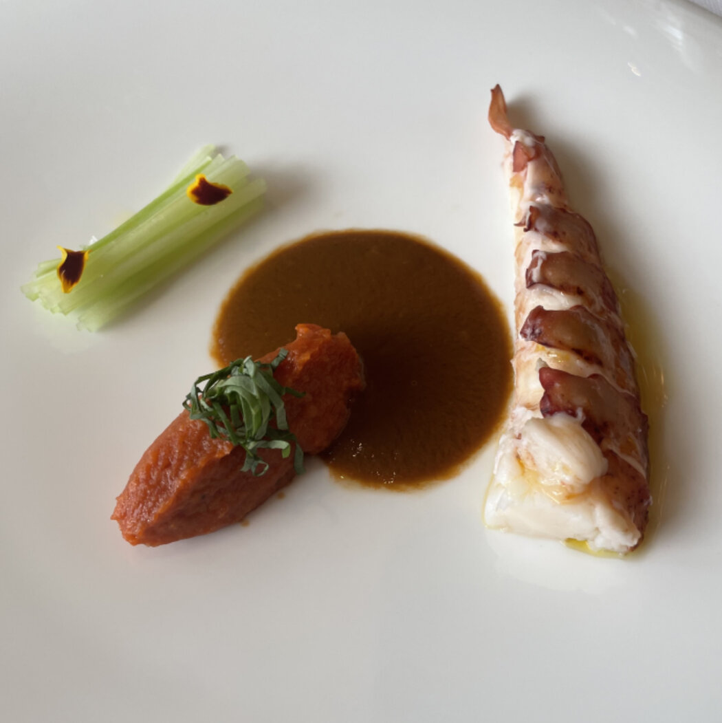 周三晚餐上的水煮龙虾尾配番茄酱汁及浓汤。 South Korean presidential office