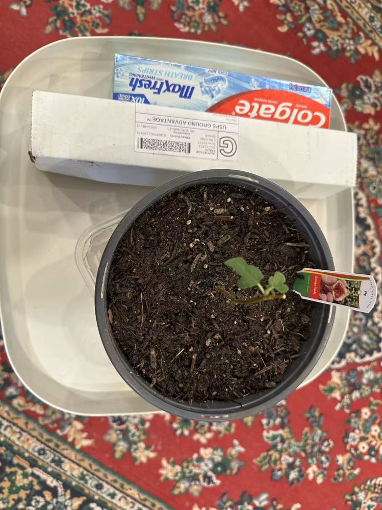 昨天早上九点多,收到邮局短信通知,说我的无花果树已送达。我赶紧出门,在门前和车库门口找了半天,也没看到。按我想象,树苗至少得有我手指那么粗吧,应该在一个花盆里吧?会不会送货的人把东西送错了地址?正琢磨着,再看了下通知,居然写着“已放入邮箱”。