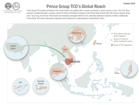 10月14日,总部设于柬埔寨的跨国企业太子集团(Prince Holding Group)及其创办人陈志被纽约东区联邦检察官起诉,指控其以房地产与金融投资为掩护,经营庞大的跨国诈骗帝国。陈志被控电汇诈骗、洗钱与强迫劳动,若罪名成立,最高将面临40年监禁。