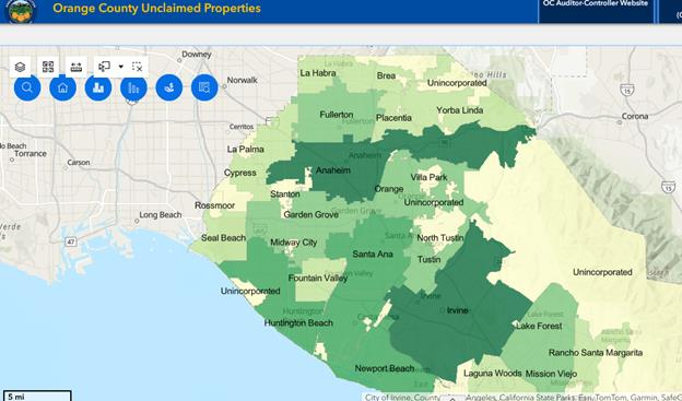 橙县ocunclaimed.gov网站主页。 (ocunclaimed.gov)