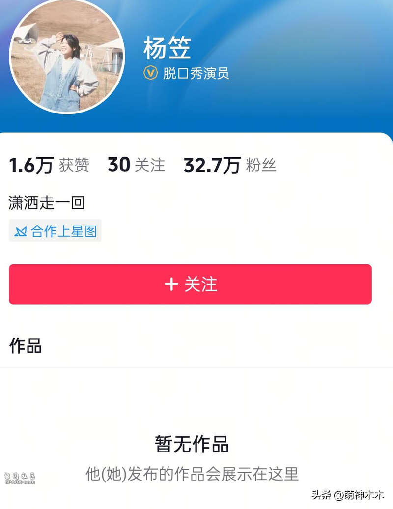 杨笠的短视频平台有32万粉丝,如今打开显示匝剔作品,可见是直接清空了之前的所有作品。而她的主页上还显示有商务合作联系方式,说明账号还没有停用。