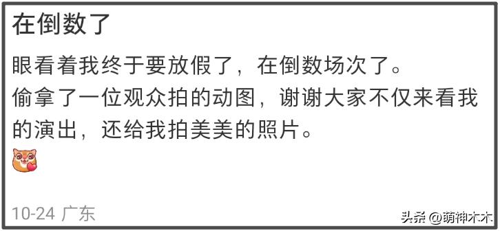 观察某平台内容,发现杨笠最近两条分享都是个人脱口秀巡演,时间相隔4个月,6月份是宣布人生第一场脱口秀巡演启动,最近的一条则是“倒数场次”,她表示“眼看着终于要放假了”,不知是否在预告休息一段时日,再重新出发。还俏皮的表达对粉丝的爱意,称拿了粉丝拍的图感谢大家来看她,告别意味确实浓。