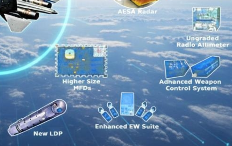 先进的对地攻击吊舱(估计还是以色列的litening),增强的电子战套件,更大尺寸的MFD,先进的武器控制系统。