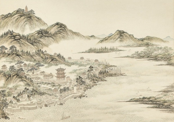 清代画家关槐的黄鹤楼图。(图片来源:国立故宫博物院)