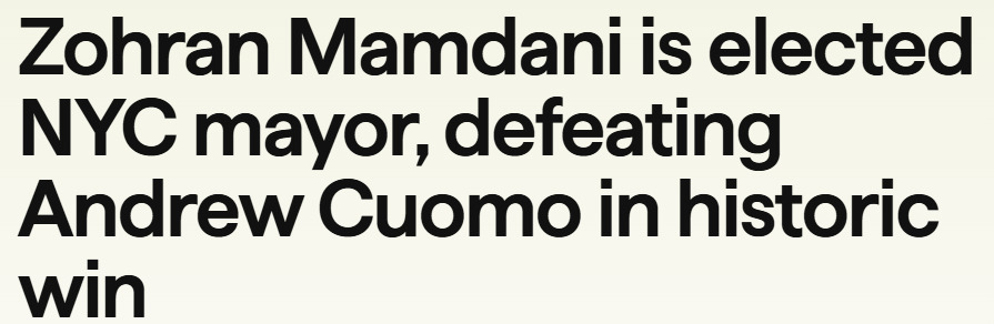 佐赫兰·马姆达尼(Zohran Mamdani),一名民主社会主义者兼纽约州众议员,凭借其魅力与对生活负担问题的持续关注,激发了一场草根运动并凝聚出新的民主党联盟——他于周二当选为纽约市第111任市长。