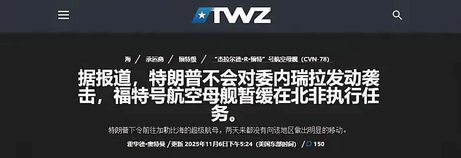 当地时间11月6日下午报道:《据报道,川普不会对委内瑞拉发动袭击,福特号航母暂缓在北非执行任务》,也就是说美国又变主意了,不过,估计大家都很难猜测到美国总统给出的理由,简直让人哭笑不得哦,川普说的是什么理由呢?