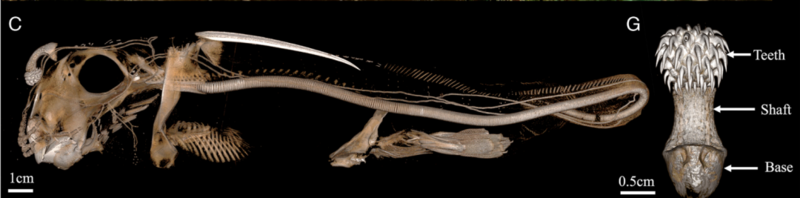 为了找出答案,科恩和同事捕获并分析了数百条斑点鼠鱼,使用微CT扫描(micro-CT scans)和组织样本追踪了头鳍的发育情况,并将其现代鱼类与化石祖先作了比对。扫描结果显示,雄性斑点鼠尾鱼的头鳍从胚胎期就开始发育,这一结构从一个小的细胞团开始逐渐发育,最终长出牙齿。与此同时,雌性斑点鼠尾鱼则没有发育成头鳍,它们的小蹦包并没有像雄性那样长得很大,而且从未长出完整的牙齿,但遗留有早期发育痕迹。