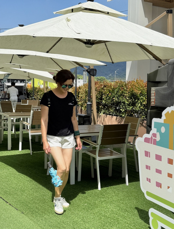 6.这张照片的上半身完全笼罩在遮阳伞的暗影下面,本来应该很容易出状况才对,但明亮的地面返光改变了一切,虽然反映到脸上的返光貌似有点过强?