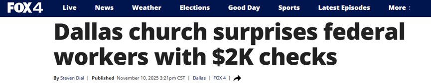 虽然暂时停职的联邦工作人员可能即将结束这种局面,但许多人现在仍在艰难付账单。这就是为什么达拉斯的一所教堂向会众中的联邦工作人员发放了2000美元的支票。