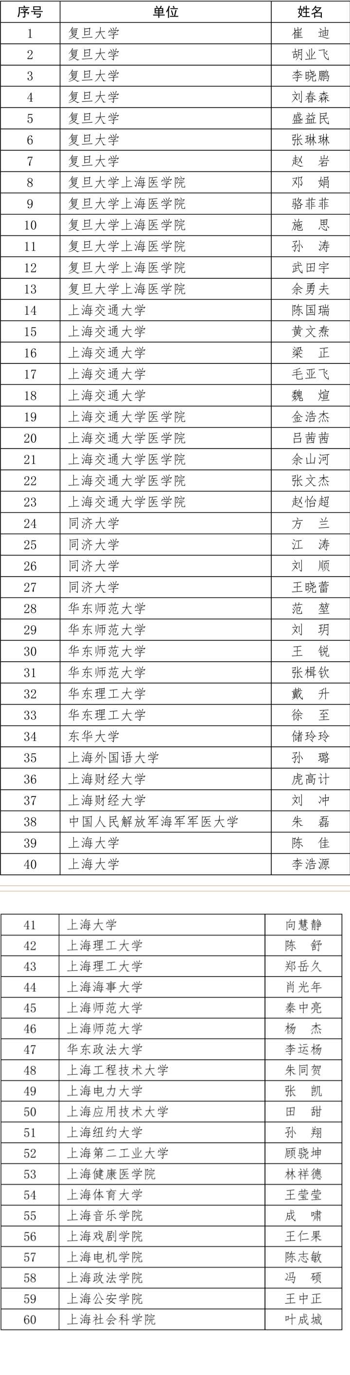 上海“曙光计划”项目拟入选名单公示