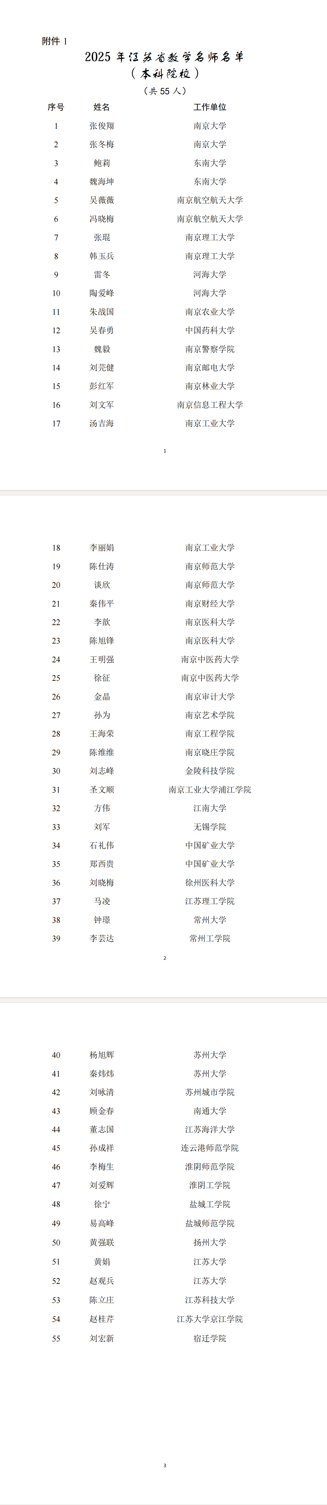 根据省教育人才队伍建设年度计划,经各高校、设区市教育局推荐,省教育厅组织专家遴选出2025年江苏省教学名师300人。现予以公示,公示时间为2025年11月10日至11月16日。