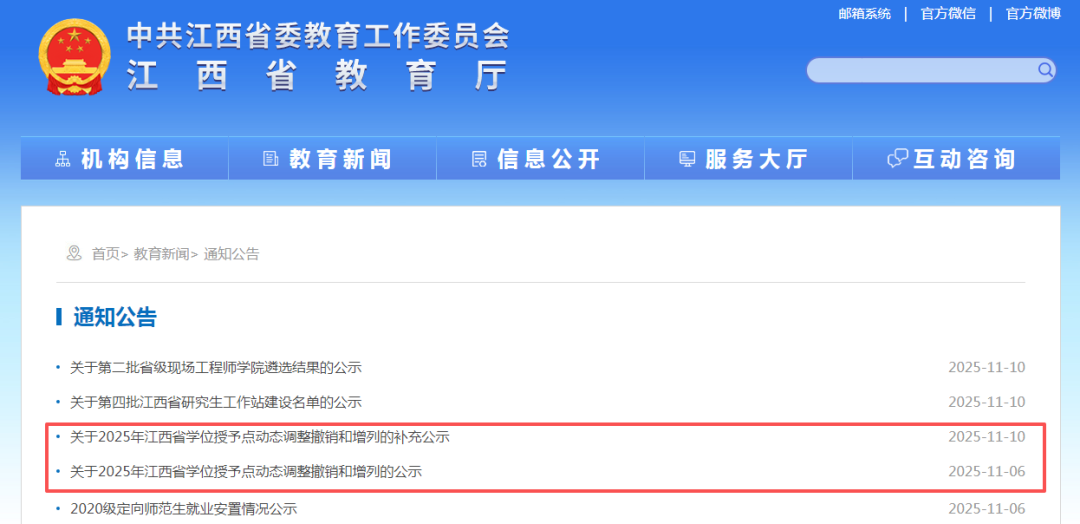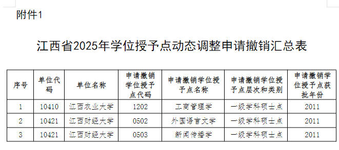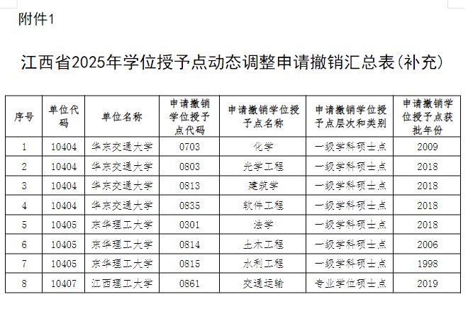 近日,江西省教育厅发布两则公示:《关于2025年江西省学位授予点动态调整撤销和增列的公示》《关于2025年江西省学位授予点动态调整撤销和增列的补充公示》。