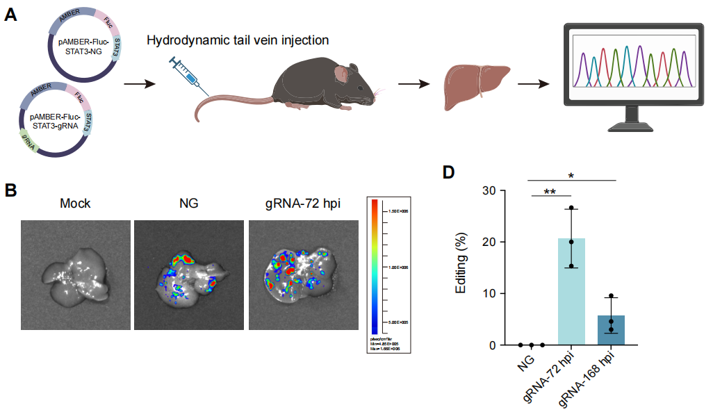 AMBER编辑器在小鼠肝脏中的表达及编辑功能验证。图片由研究团队提供
