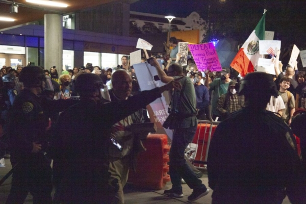 11月10日晚,美国转折点(Turning Point USA),在加州大学柏克莱分校(UC Berkeley)举办巡回演讲活动。在活动场地外,有近百人抗议,数度出现气氛紧张,还有抗议者推倒隔离墩,试图冲入时被警方逮捕。