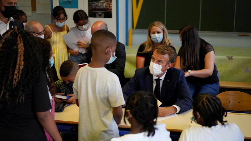 马克龙在马赛的一小学参访 ? Daniel Cole/Pool via REUTERS