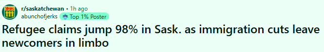 根据联邦统计数据显示,在联邦和省级政府大幅削减移民项目后,萨斯喀彻温省的难民申请数量暴涨了近98%,而新永久居民人数则减少了一半以上。